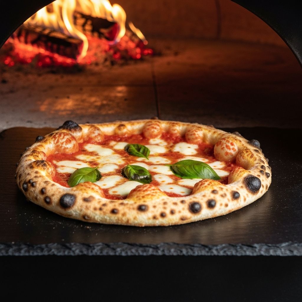 Autentyczna pizza neapolitańska wypiekana w piecu opalanym drewnem. 48 godzin fermentacji dla idealnego ciasta.